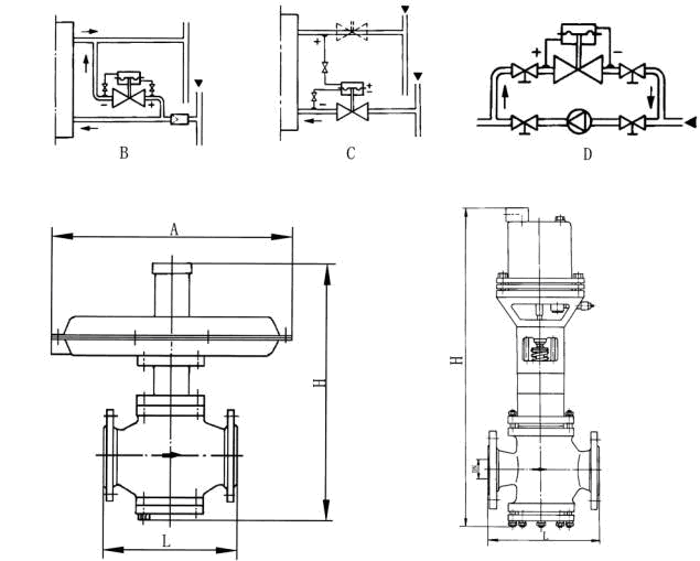 ·阀体为四通形式,因而K、B型可通用一种阀体。