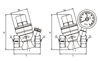 本阀为薄膜直接作用式减压阀,利用调节弹簧的预定设置实现自动改变阀瓣的开度,使进口压力减压至某一需要的出口压力,当进口压力与出口流量在某一范围内变化时,利用出口压力的变化直接控制阀瓣的运动,自动保持出口压力在一定范围之内。