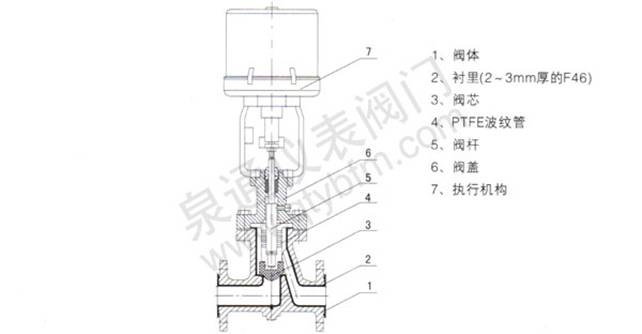 1、耐腐蚀:阀体内腔、阀座、阀杆均包衬2.5~3mm厚的F46,能耐酸、碱,耐强腐蚀。