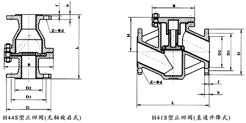 主要型号号有H41S型,结构一般与截止阀相似,其阀瓣沿着通道中心作升降运动,动作可靠,一般只能安装在水平管路上。