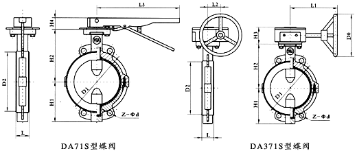 手动、蜗轮动“A”型对夹连接衬塑蝶阀(中线):