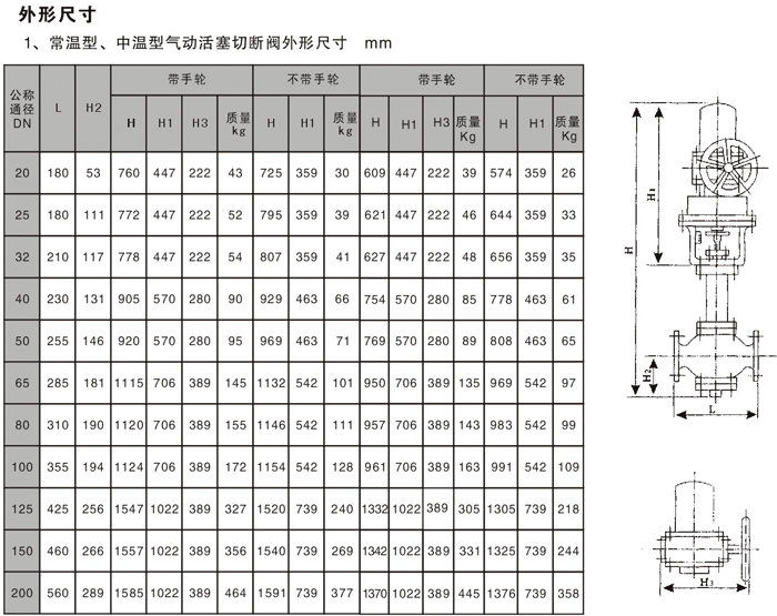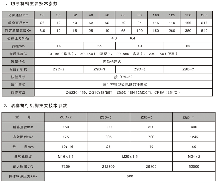 ZSPQ气动活塞切断阀由切断机构与气动活塞执行机构组成。切断机构采用直通单座形式,DN20阀芯为单导向,DN25-200阀芯为双导向,具有结构简单,操作方便,使用可靠,快速开闭等特点。主要应用于无杂质、无颗粒的液体、气体介质,要求快速严密关闭,快速放空的自动控制系统中。使用温度:-20℃~500℃(高温),-196℃~-60℃(低温),压力:1.6~6.4 MPa。