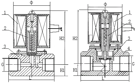1、线圈 2、动铁芯 3、阀体 1、线圈 2、动铁芯 3、阀杯 4、阀体
