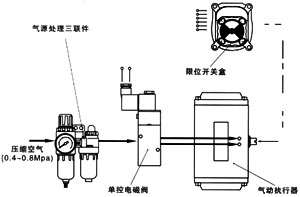 注:气动阀门根据不同的使用介质、阀门的扭矩及控制方式,其适配的执行器型号可能有所不同,相关尺寸有所变化。特殊应急场合还可加装手动装置。 |