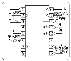 ◆端子5、16:为弱电信号线端子,输出4~20mA执行器位置信号,有光电隔离,其中15接正,16接负。