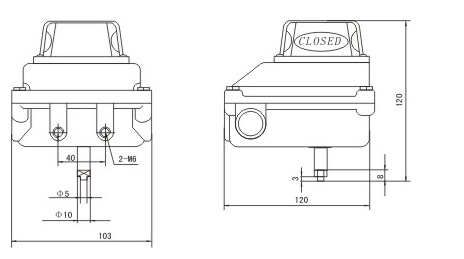 系列阀门限位开关箱检测的阀位转角位移,通过轴连接件或反馈杆使传动产生旋转,让凸轮触动微型开关,从而使开关组件的触点闭合或断开,通过接线端子向外部传送开关量信号,并通过指票器就是显示。