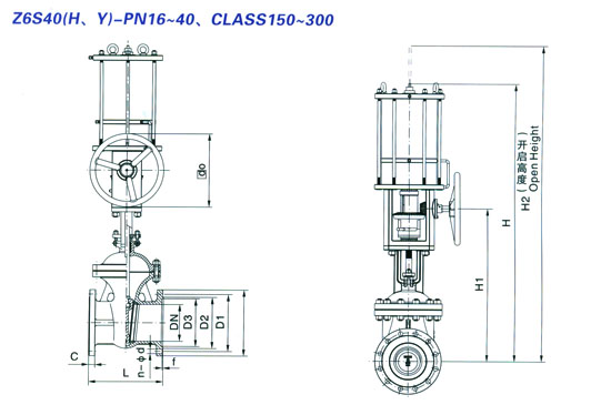 主要外形及连接尺寸 Z6S40(H、Y)-Class300