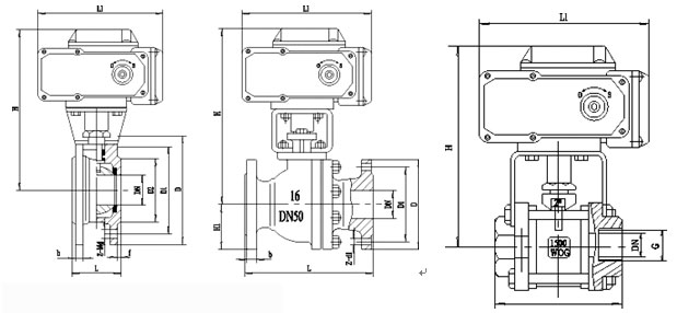 ● V73411型三块式电动丝扣式球阀外形尺寸