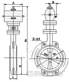 采用新型系列GT型气动执行器,有双作用式和单作用式(弹簧复位),齿轮传动,安全可靠;大口径阀门采用系列AW型气动执行器拔叉式传动,结构合理,输出扭矩大,有双作用式和单作用式。