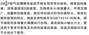 ZMA/BP型气动薄膜单座调节阀采用顶导向结构,阀体机构紧凑,流体通道呈S型,压降损失小流通量大,可调范围广,流量特性精确度高。