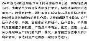 ZAJO型电动O型切断球阀是一种旋转型调节阀,为电动单元组合仪表中执行单元,应用于石油、化工、造纸、冶金、污水处理等行业中。