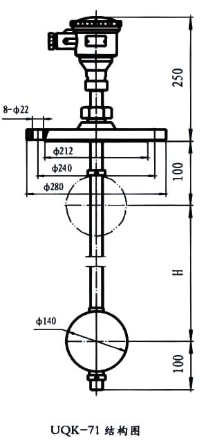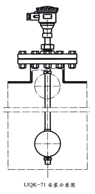 3、传感器在安装前须进行检查,用万用表棒接在传感器接线端子,当浮球上下移动时,相应地使干簧管动作。