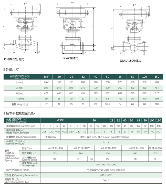 RV ZJHPF46型气动薄衬氟塑单座调节阀